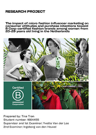 This thesis explores how micro-influencers affect consumer attitudes and purchase intentions toward B Corp-certified fashion brands among Dutch women aged 20–29. It offers actionable strategies for brands to build trust, boost awareness, and drive sustainable fashion choices through authentic influencer partnerships.